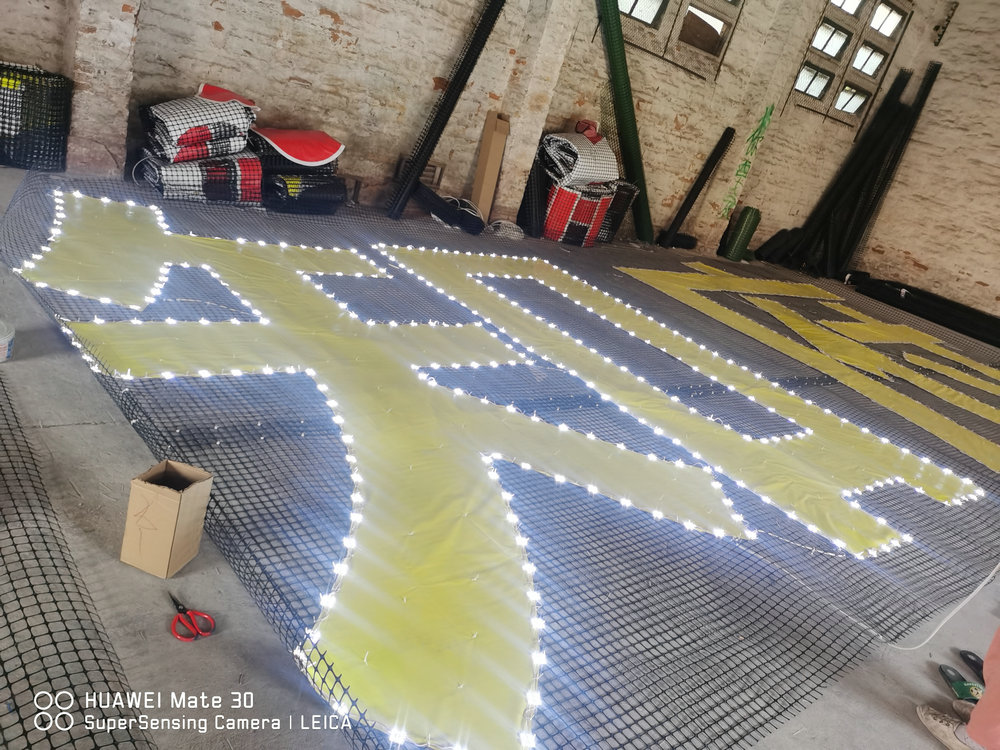注:可制作成超大字,運輸可把發(fā)光字網(wǎng)折疊裝運,安裝方便快捷